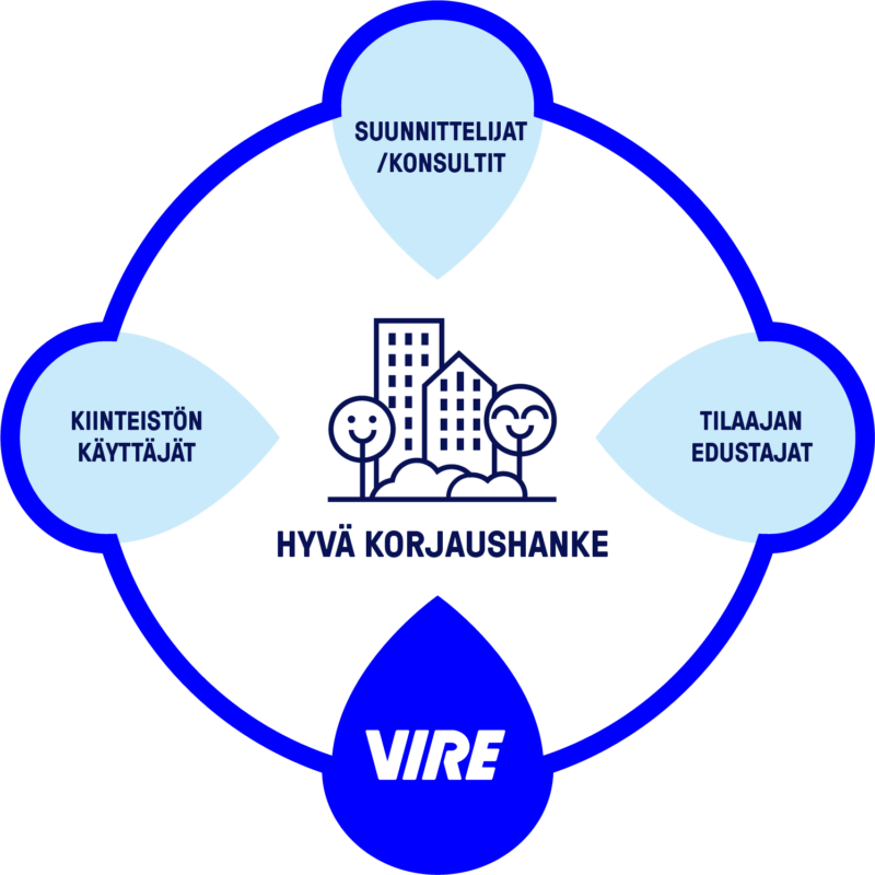 Arvovireen tavoitteena on tuottaa asiakkaalle lisäarvoa tekemällä juuri tarpeeseen sopivia korjauksia – ei enempää kuin on järkevää. Suunnittelemme teknisesti ja taloudellisesti fiksun kokonaisuuden, joka perustuu kiinteistön todelliseen kuntoon ja omistajan toiveisiin. Toteutamme urakat niin, että vuokralaisten arki häiriintyy mahdollisimman vähän.